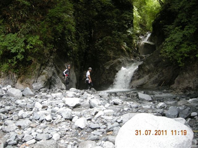 生憎の雨模様天気予報に濡れていても行ける沢登りへ行きました。林道は最近の大雨のためか、予定していた県民の森までは入れず、危うくめげるところでした。穴沢橋付近の下降が過去の記憶に比べて又悪くここでまためげそうになりました。小川谷に入るとこれまた予想していなかった水流で危うくgive-up寸前でした。今までは膝より上は浸かったことが無かったのですが、今回はたっぷり水に浸かってしまいました。そのため、写真も余り撮れずの遡行でしたが、それなりに水流を楽しむことが出来ました。やはり1年に1度は行きたい沢ですね。